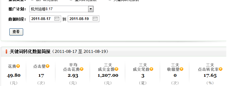 17号接手的单子,3天转化如上图,没想到店主人品这么好,17次点击就成交了3笔,销售金额1207元,关键的是 只花了50元,这还是我开始不敢提价的原因 本周开始大幅优化关键词以及出价 等质量得分上来了,全部主关键词开始抢首页第...