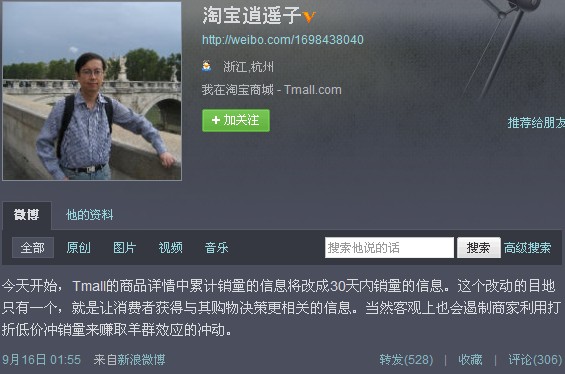 tmall的总裁在微博上声明从9月16日开始,淘宝商城将和集市店一样:商品详情中累计销量的信息将改成30天内销量的信息。这个改动的目地只有一个,就是让消费者获得与其购物决策更相关的信息。当然客观上也会遏制商家利用打折低价冲销量来赚取羊群效...